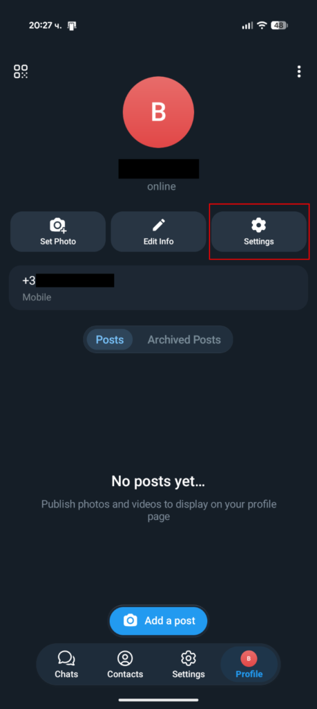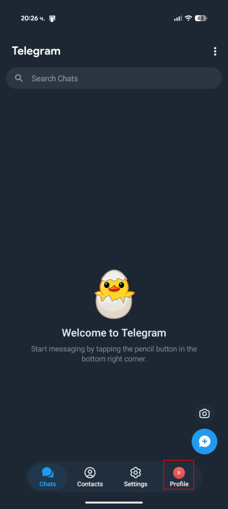 - След като сте се регистрирали, отворете „Profile“ долу в дясно