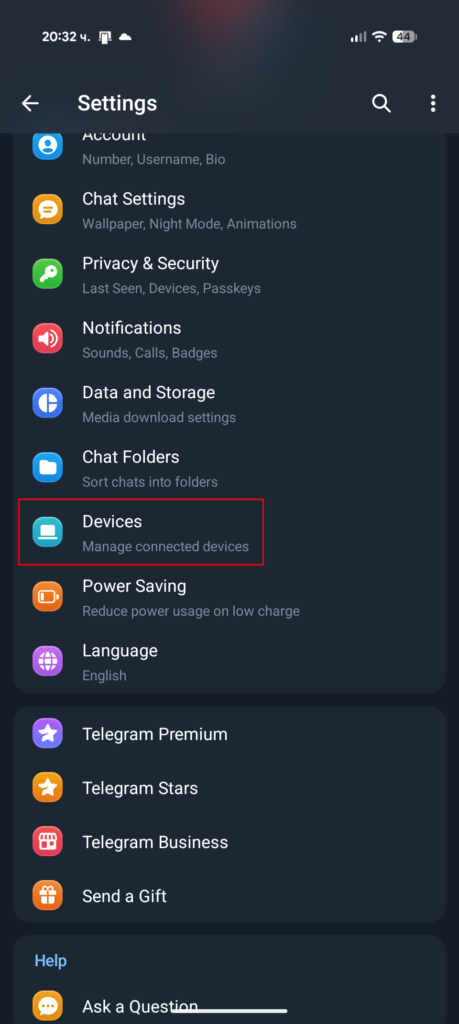 - Изберете „Devices“