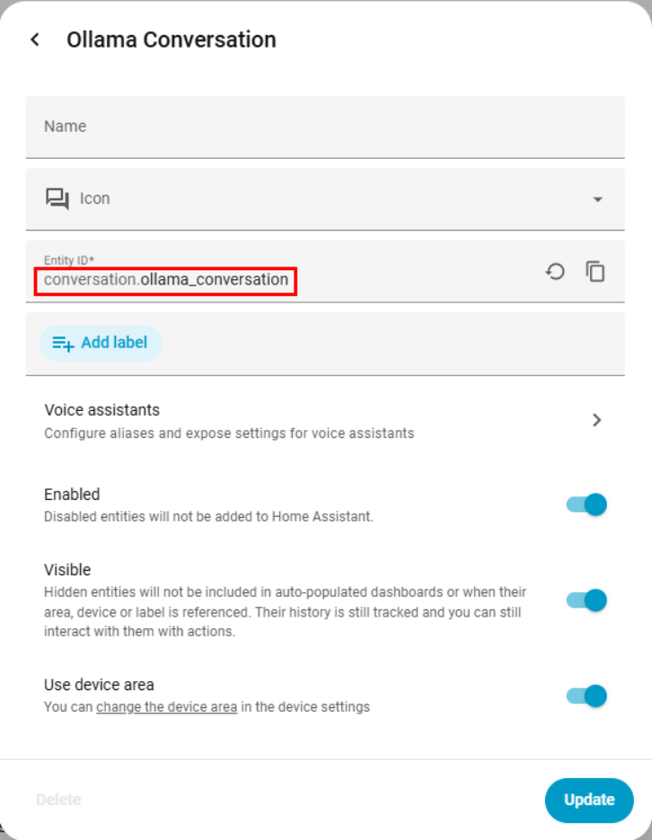 - След това да открием Id-то. Това се прави като се кликне на Ollama Conversation
