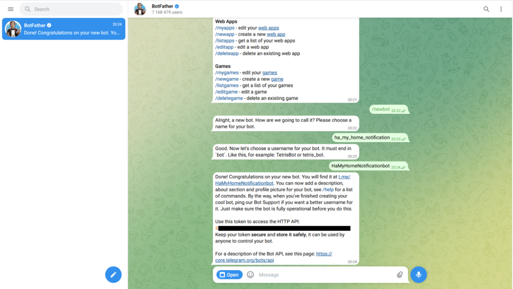 Сега вече сме готови и имаме цялата нужна информация за интегриране на Telegram с нашия Home Assistant